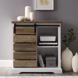 Walker Edison 32 in. Solid White/Rustic Oak Rustic Farmhouse Sliding Slat Door Accent Console$100Pembroke Pines, FL