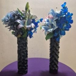 * NEW LOW PRICE * Blue Ceramic Vases w Faux Bouquets of Lilies, Orchids & Anemones @ Lasting Creations$20Oakland Park, FL