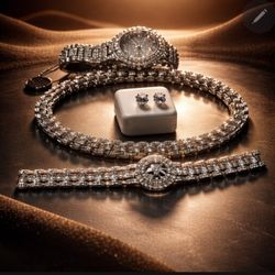 Silver Filled watch, necklace, and bracelet set with diamond accents and 7mm CZ stud earring$200Miami, FL