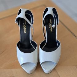 Saint Laurent Jodie leather platform sandals white pearl YSL Size EUR 37, US 6.5$650Oakland Park, FL