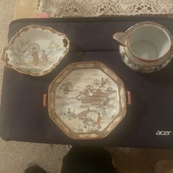 Vintage Japanese Geishas Porcelain Trio Hand Painted Creamer & Dish Set w/ Nikkon Kutani Scenery and Gold Gild$30Fort Lauderdale, FL