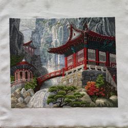 Home Decor Cross Stitch Embroidery China Temple And Waterfall $99Boca Raton, FL