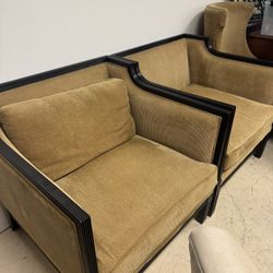pair of vintage Art Deco-style club chairs with black lacquered frames and gold/mustard yellow textured fabric upholstery$195Fort Lauderdale, FL