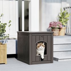 Cat Litter Box Enclosure, Plastic Hidden Litter Box Side Table with Openable Front Door, Waterproof & Weatherproof Cat House for Indoor & Outdoor Use $30Oakland Park, FL