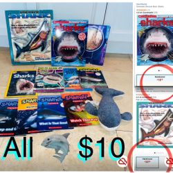 $10 For All Kids Books Sharks 🦈 10 count and Egyptian Cotton shark Toy$10Boca Raton, FL