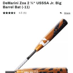 DeMarini Zoa 2 ¾“ USSSA Jr. Big Barrel Bat- 27in (-11)$80Pompano Beach, FL
