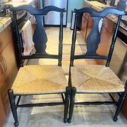Pottery Barn black pedestal bistro table with two rush-seat chairs; solid, stylish, minor cosmetic wear on tabletop, priced to sell.$350North Miami Beach, FL