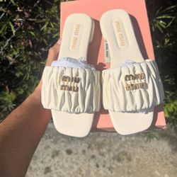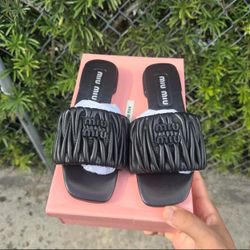 PRADA QUILTED SLIDE SANDAL MULE DARK BEIGE LEATHER WITH LOGO LUG SOLE SZ 40 NEW$595Fort Lauderdale, FL