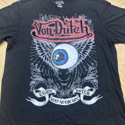 Von Dutch Shirt Keep An Eye Out Eyeball Print With Embroidery Black Size X-Large $30Miami, FL