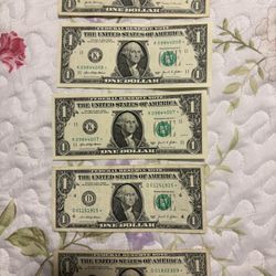 5 Billetes De Un Dólar Con Estrella .Perfecto Estado De Conservación$1Hialeah, FL