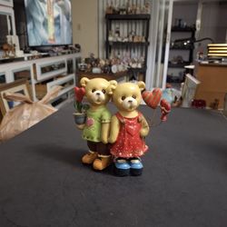 Valentine 💝 Teddy Bear Couple Holding Hands & Hearts In Resin Vintage Collectible Distributed By Publix 5.5"H X 4.5"W $7North Lauderdale, FL