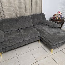 Gray Fabric Small Sectional With Metal Legs$100Miami, FL