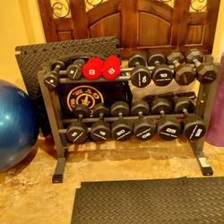 SET OF RUBBER DUMBBELLS & PYRAMID DUMBBELL SPACE SAVING RACK (PAIRS OF : 5s 10s 15s 20s 25s)$260Pompano Beach, FL