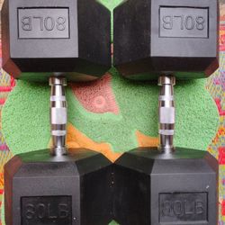 PAIR OF RUBBER HEX 60 LB. DUMBBELLS RUBBER : 95s 90s 80s 70s 50s 45s 40s 35s 30s 25s 20s 15s 10s Also Available$120Deerfield Beach, FL