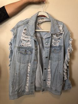 Ripped designer Jean jacket. Size large$60Hollywood, FL