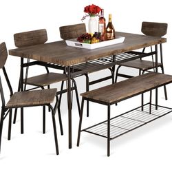 NEW IN BOX - Modern Dining Set for Home, Kitchen, Dining Room w/Storage Racks, Rectangular Table, Bench, 4 Chairs, Steel Frame - Brown$350Miami, FL