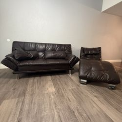 Modern Brown Leather Futon Sofa & Convertible Chair Set$100Hollywood, FL