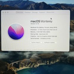 Apple MacBook Pro A1502 13.3" Retina i5 2.70GHz 8GB 256GB SSD MONTEREY Very Good$180Hialeah, FL