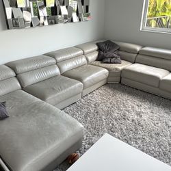 Large Grey/Taupe Leather Sectional Sofa - L-Shaped Corner Couch with Chaise (Used, Normal Wear)$500Aventura, FL