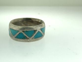 Vintage 925 Sterling Silver Turquoise Inlay Southwestern Style Band Ring Size 6$50Miami, FL