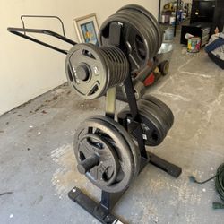 Bumper Weight Plate Set, Olympic Bar, Curl Bar, Weight Station Rack, Step Platform+$129Miami, FL