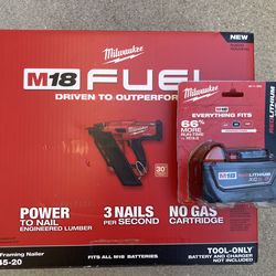 Milwaukee 30degree nailer and battery$510Fort Myers, FL