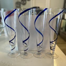 Swirline Cobalt Blue" mouthblown tall pilsner beer glasses$30Naples, FL