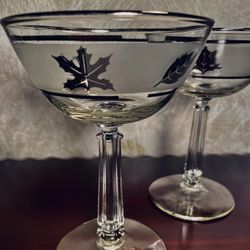 2 Champagne/Tall Sherbet Silver Leaf by LIBBEY GLASS COMPANY , Blown Glass$15Naples, FL