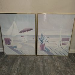 Vintage Beach Scene Wall Art Gold Framed $50Fort Myers, FL