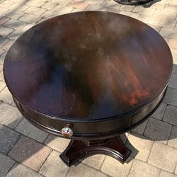 Antique Brown Wood Round Pedestal Side Table with Drawer Traditional Style$150Naples, FL