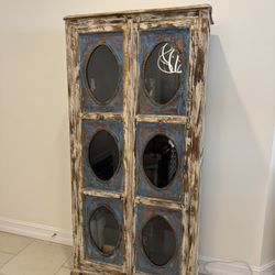 Solid Wood Rustic Blue Glass Door Cabinet / Armoire$500Naples, FL