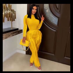 Elegant 2 Piece Sets Women Outfit 2024 Autumn Winter Long Sleeve Bodysuit Top and Tassel Pants Matching Sets Conjuntos Femininos$30Immokalee, FL