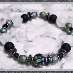 Albalone, Quartz And Glass Beaded Bracelet Handmade $12Estero, FL