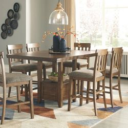 Flaybern - Brown - 7 Pc. - Rectangular Dining Room Counter Extension Table, 6 Upholstered Barstools$829Naples, FL