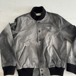 OFF-WHITE Virgil Abloh Airport Baggage Tape Varsity Bomber Jacket Black Gray M$450Miromar Lakes, FL