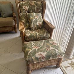 Wood and rattan chair, ottoman.$125Fort Myers Beach, FL