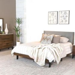 Mays - 4-Piece Upholstered Queen Bedroom Set - Walnut Brown And Gray
