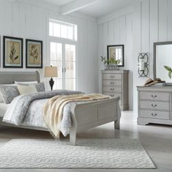 Louis Philippe-4-Piece Queen Panel Bedroom Set With High Headboard