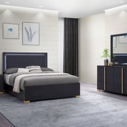 Kieran - 4 Piece Queen Bedroom Set With Upholstered LED Headboard - Grey