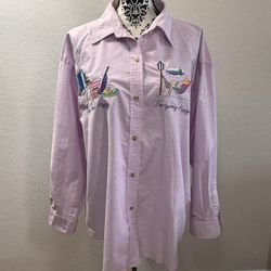 MANDAL BAY Shirt Tunic Blouse size 1X Lilac embroidered Mom long sleeve$15Naples, FL