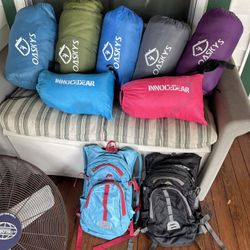 5 Oaskys Sleeping Bags 2 Innocedear Tents and 2 Ozark Trail BackPacks$100Tampa, FL