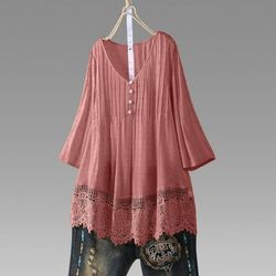 Pink Casual T Shirt V Lace Long Sleeve Blouse Womens Summer Pullover Loose Top- Medium$20Tampa, FL