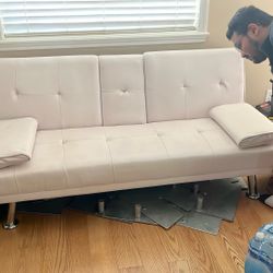White Leather Tufted Couch, Throw Pillows Included $200Lutz, FL