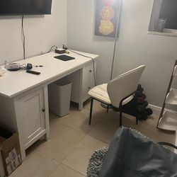 modern white writing desk featuring a minimalist metal frame and integrated wooden drawers with lucite top$30Fort Lauderdale, FL