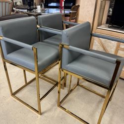 Set of 3 Modern Dark Gray Upholstered Bar Stools – Like New$800Miami, FL