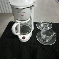 NEW NEVER BEEN USED, "BLACK AND DECKER" SMART BREW 6 CUP COFFEE MAKER WITH 2 ANTIQUE GLASS CUPS AND SAUCERS MADE BY "MEXICO 20" PRICED TO MOVE!!!$12Dania Beach, FL