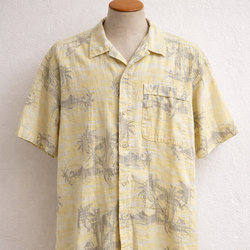 Vintage Columbia Hawaiian Shirt Yellow Palm Print Cotton Men's L$15Halndle Bch, FL