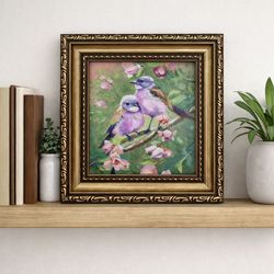 Beautiful Lovebirds Mini Painting – Perfect Gift – Gold Frame • Unique Handmade Bird Art – Ready to Display – Ornate Frame • Adorable Bird Couple Pa$70Hollywood, FL