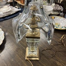 Vintage 1970s Cofrac Art Verrier Hand Blown Heavy French Crystal and Brass Table Lamp $499Fort Lauderdale, FL