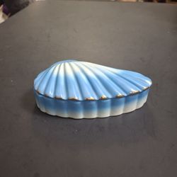 Scallop Seashell Shaped Trinket Box In A Lovely Ocean Blue With Gold Accents- Ceramic 5"W X 2.75"D X 1.5"H$10Fort Lauderdale, FL